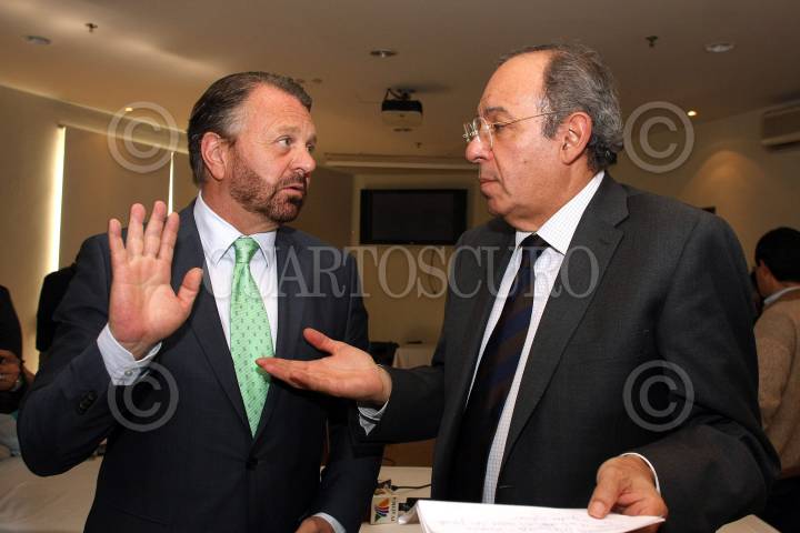 MÉXICO, D.F., 23FEBRERO2012.- Juan Ramón de la Fuente, ex rector de la UNAM y Fernando Gómez Mont ex secretario de gobernación durante la presentación del libro "Una agenda para México 2012" de Aguilar Camin y Jorge Castañeda. FOTO: ENRIQUE ORDÓÑEZ /CUARTOSCURO.COM