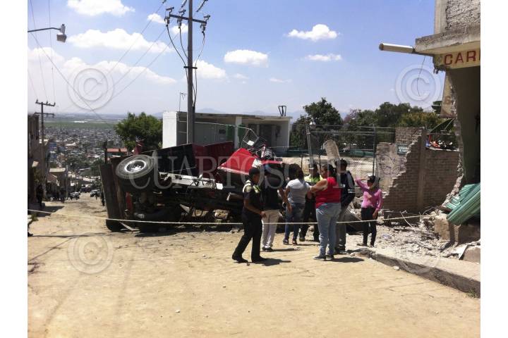 CHIMALHUACAN, EDOMEX, 24AGOSTO2015.- Nueve personas resultaron lesionadas después que un camión de carga se quedo sin frenos e impactara a un vehiculo y una vivienda en el municipio de Chimalhuacan. FOTO: CUARTOSCURO.COM