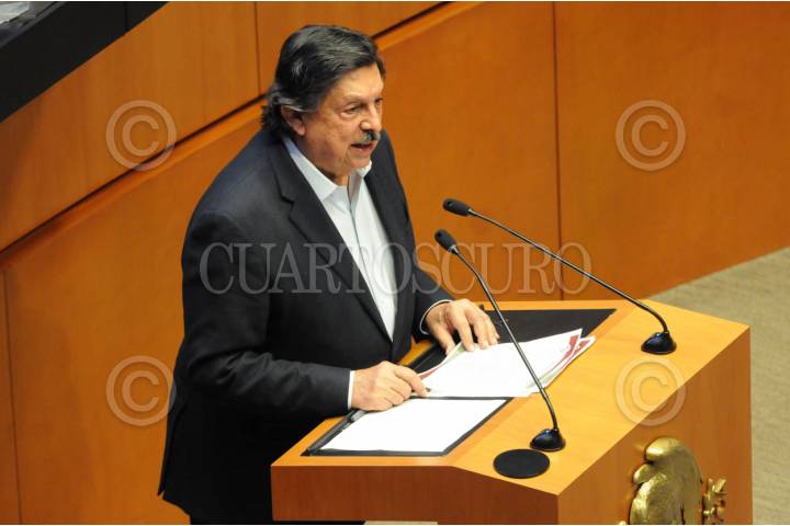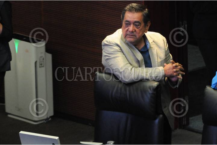 CIUDAD DE MÉXICO, 05MARZO2024. - Napoleón Gómez Urrutia, senador de Morena, durante su participación en el Senado. FOTO: DANIEL AUGUSTO / CUARTOSCURO.COM