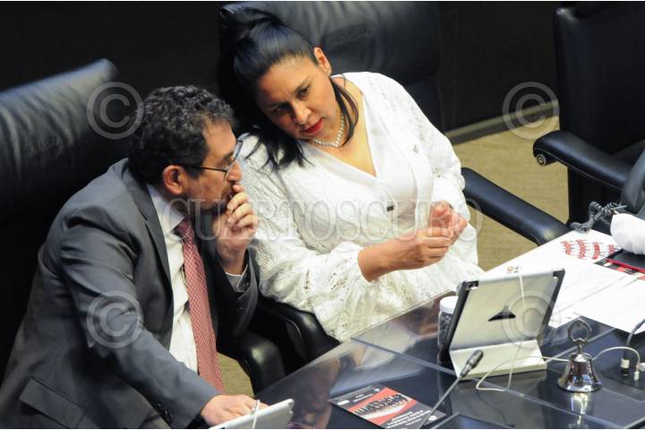 CIUDAD DE MÉXICO, 05MARZO2024. - Ana Lilia Rivera, presidenta de la Mesa Directiva del Senado, dialoga con el morenista, César Craviotto. FOTO: DANIEL AUGUSTO /CUARTOSCURO.COM
