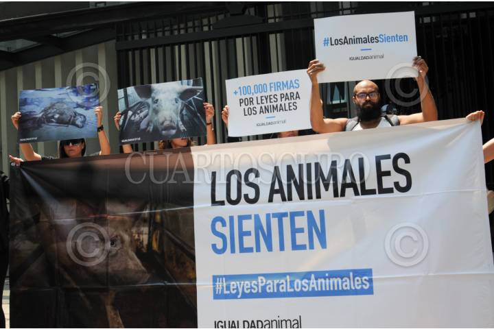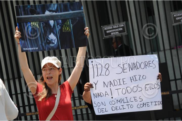 CIUDAD DE MÉXICO, 25ABRIL2024. - Activistas en favor de los derechos de los animales, piden que el senador de Morena, Adolfo González, sea destituido. FOTO: DANIEL AUGUSTO /CUARTOSCURO.COM