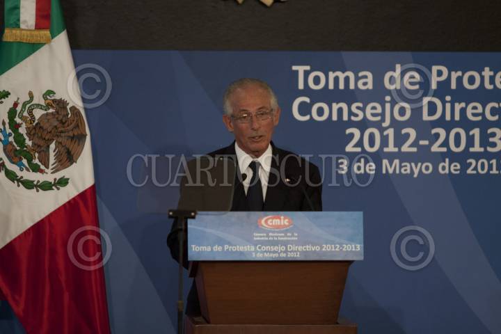 MÉXICO, D.F., 03MAYO2012.- Luis Zárate Rocha, presidente de la Cámara Mexicana de la Industria de la Construcción, ofrece su discurso en la ceremonia de toma de protesta al consejo directivo 2012-2013 de la CMIC, en la residencia oficial de Los Pinos. FOTO: MOISÉS PABLO /CUARTOSCURO.COM