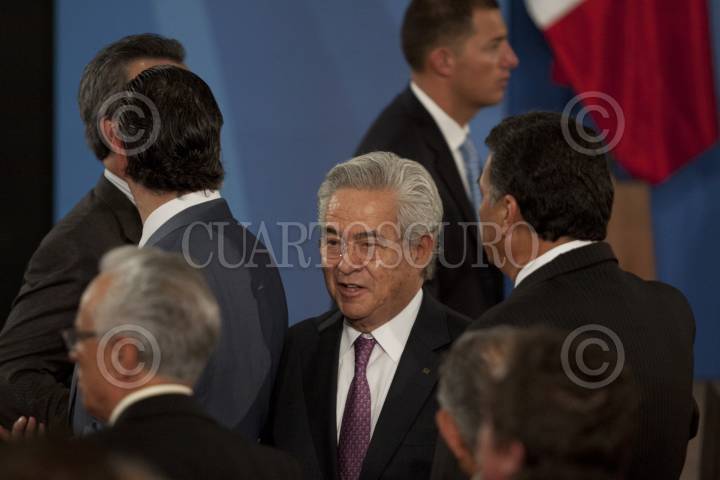 MÉXICO, D.F., 03MAYO2012.- Bernardo Quintana Isaac, Presidente de Grupo ICA, al finalizar la ceremonia en la cual se le tomo protesta al consejo directivo 2012-2013 de la Cámara Mexicana de la Industria de la Construcción, en la residencia oficial de Los Pinos. FOTO: MOISÉS PABLO /CUARTOSCURO.COM