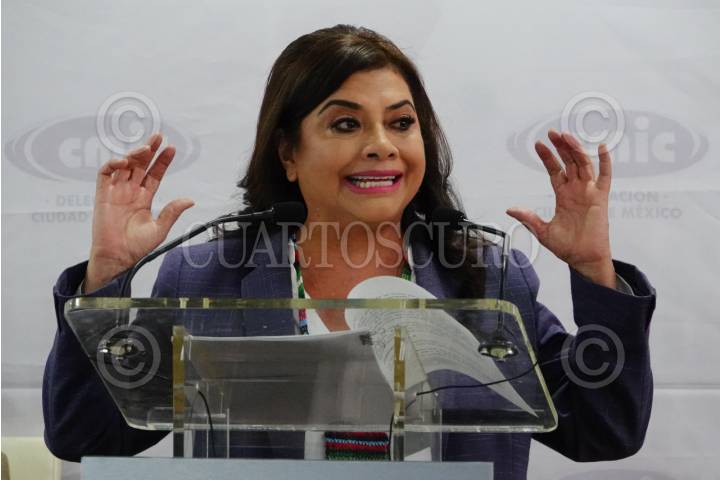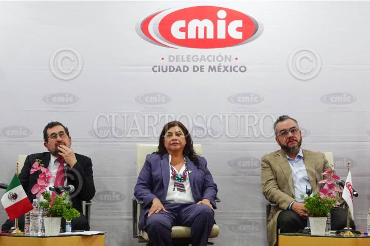 CIUDAD DE MÉXICO, 26MARZO2024.- Clara Brugada, candidata a la Jefatura de Gobierno por la coalición Sigamos Haciendo Historia, encabezó una reunión con autoridades de la Cámara Mexicana de la Industria de la Construcción, junto a Luis Méndez Jaled, director general de cmic, en donde habló de diversas propuestas para el sector de la construcción. FOTOS: ROGELIO MORALES /CUARTOSCURO.COM