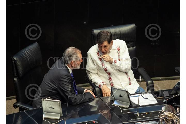 CIUDAD DE MÉXICO, 23JULIO2025.- Adán Augusto López, coordinador del Grupo parlamentario de Morena y Gerardo Fernández Noroña durante Sesión de la Comisión Permanente del Congreso de la Unión que se lleva a cabo en la Cámara de Senadores. FOTO: ANDREA MURCIA /CUARTOSCURO.COM