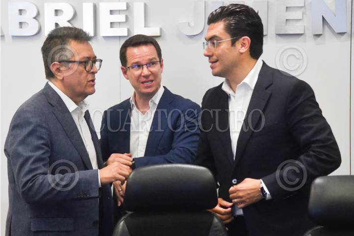 CIUDAD DE MÉXICO, 06AGOSTO2025.- Jorge Carlos Ramírez Marín; Enrique Inzunza, Mónica Angélica Álvarez, integrantes de la Primera Comisión de Asuntos Políticos e Internacionales de la Comisión Permanente del Congreso de la Unión, durante la reunión extraordinaria en la que se aprobó el dictamen que avala las propuestas de Claudia Pavlovich como embajadora de México en Panamá y de Francisco Javier Díaz de León como próximo embajador de Turquía. La reunión fue realizada en el salón del protocolo de la Junta de Coordinación Política (Jucopo) del Senado de la República. FOTO: MARIO JASSO/CUARTOSCURO.COM