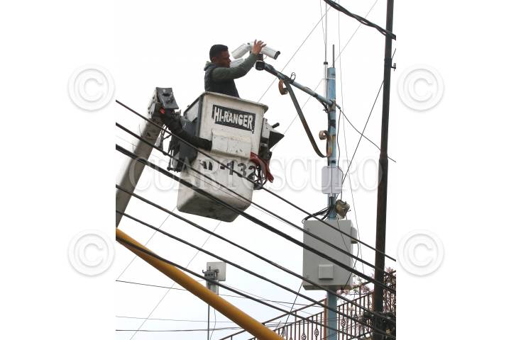 CUERNAVACA, MORELOS, 23DICIEMBRE2024.- Un trabajador del gobierno de la capital da mantenimiento a cuatro cámaras de videovigilancia instaladas en la avenida José María Morelos y Pavón. La comuna capitalina instaló 500 cámaras en este año que son operadas desde un C4 municipal. FOTO: MARGARITO PÉREZ RETANA/CUARTOSCURO.COM