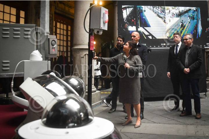 CIUDAD DE MÉXICO, 28ENERO2025.- Presentación de las nuevas cámaras del Centro de Comando, Control, Cómputo, Comunicaciones y Contacto Ciudadano de la Ciudad de México "C5". El gobierno capitalino buscará pasar de 83 mil cuatrocientas a 150 mil cámaras de videovigilancia. FOTO: MARIO JASSO/CUARTOSCURO.COM
