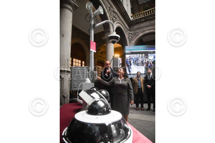 CIUDAD DE MÉXICO, 28ENERO2025.- Clara Brugada, jefa de Gobierno, encabezó la presentación de las nuevas cámaras del Centro de Comando, Control, Cómputo, Comunicaciones y Contacto Ciudadano de la Ciudad de México "C5". El gobierno capitalino buscará pasar de 83 mil cuatrocientas a 150 mil cámaras de videovigilancia. FOTO: MARIO JASSO/CUARTOSCURO.COM