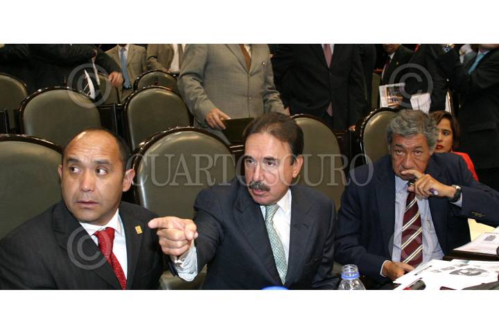 MÉXICO D.F. 14NOVIEMBRE2006.- Loe diputados Cesar Duarte Emilio Gamboa Patrón dirigente de la bancada del PRI, Rios Camarena y José Murat, durante la sesión de la cámara de diputados. FOTO: GUILLERMO PEREA/CUARTOSCURO.COM