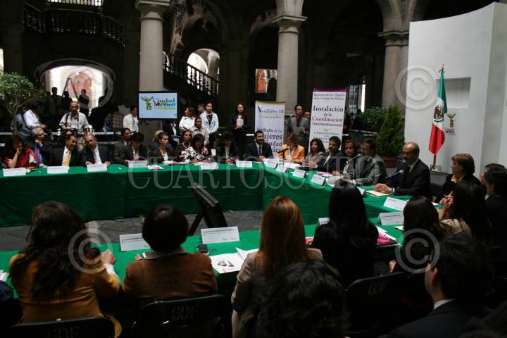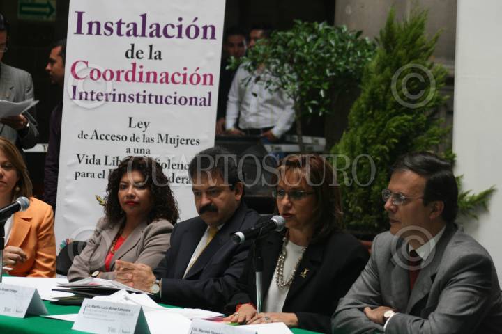 MÉXICO, D.F., 18JULIO2008.- Martha Micher Camarena, secretaria ejecutiva de la cordinacion interinstitucional y Marcelo Ebrard jefe de gobirne del D.F., durante la Instalación de la coordinacion interinstitucional "Ley Acceso a las Mujeres", que se realizo en el edificio de gobierno de la capital. FOTO: RICARDO CASTELAN /CUARTOSCURO.COM