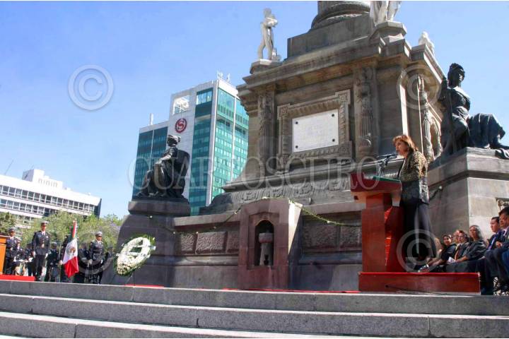 MÉXICO, D.F., 02MARZO2010.- La directora del Instituto de las Mujeres del Distrito Federal, Martha Lucía Mícher Camarena, encabezó el la columna del Angel Independencia la ceremonia conmemorativa por el 181 aniversario luctuoso de Doña Josefa Ortiz de Domínguez. FOTO: CUARTOSCURO.COM