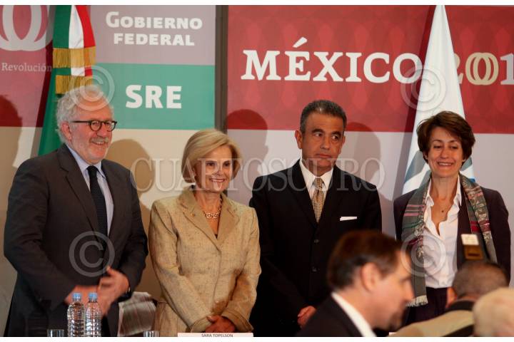 MÉXICO, D.F., 02JUNIO2010.- Mario Pezzini de la OCDE; Sara Topelson de la Secretaría de Desarrollo Social; Julio Camarena, oficial mayor de la Secretaría de Relaciones Exteriores y Claire Charbit de la OCDE durante su participación en la inauguración del taller internacional “Combatiendo la pobreza a través de la prestación de servicios públicos de calidad: Intercambio de experiencias entre países de la OCDE y de América Latina y el Caribe” que se realizo en la sede la cancillería. FOTO: RODOLFO ANGULO/CUARTOSCURO.COM