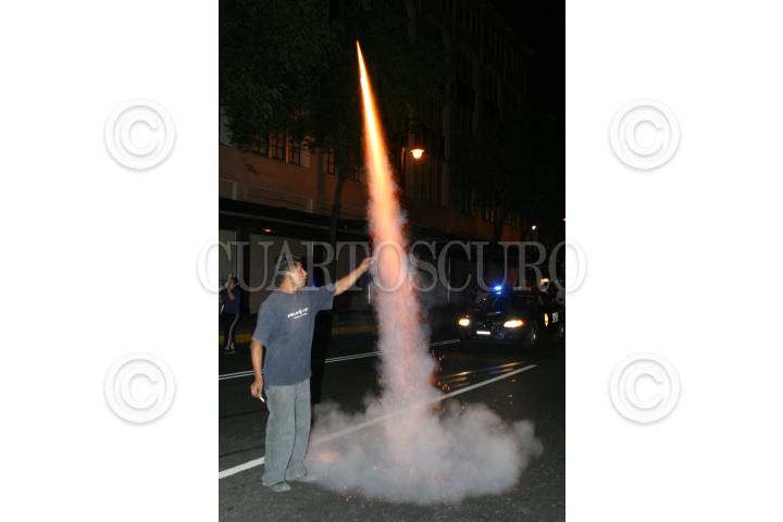 MÉXICO, D.F., 06ABRIL2007.- Un joven lanza un cohete al arrivar a la plancha de la constitución despues de una procesion procedente de la delegación Venustiano Carranza. FOTO: SAÚL LÓPEZ/CUARTOSCURO.COM
