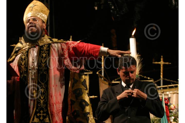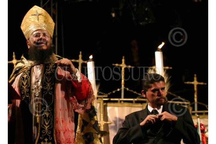 MÉXICO, D.F., 06ABRIL2007.- El monseñor Roberto Camargo es resguardado por un escolta de seguridad durante una homilia en el zocalo capitalino. FOTO: SAÚL LÓPEZ/CUARTOSCURO.COM