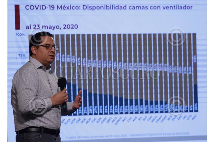 José Luis Alomía, director General de Epidemiología, durante el informe diario sobre el avance de la pandemia del Coronavirus COVID-19, en donde presentó el porcentaje de disponibilidad de camas con ventilador.