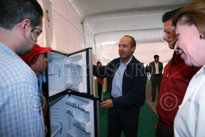 SAN MATEO NOPALA, EDO DE MEXICO, 23ABRIL2009.- Felipe Calderón Hinojosa, presidente de México, durante el evento "Cambia tu viejo por uno nuevo" que tuvo lugar en este municipio. FOTO: ARIEL GUTIERREZ/CUARTOSCURO.COM