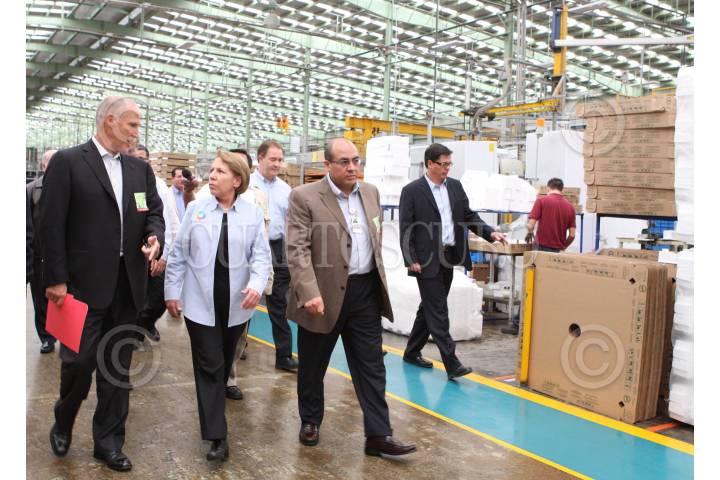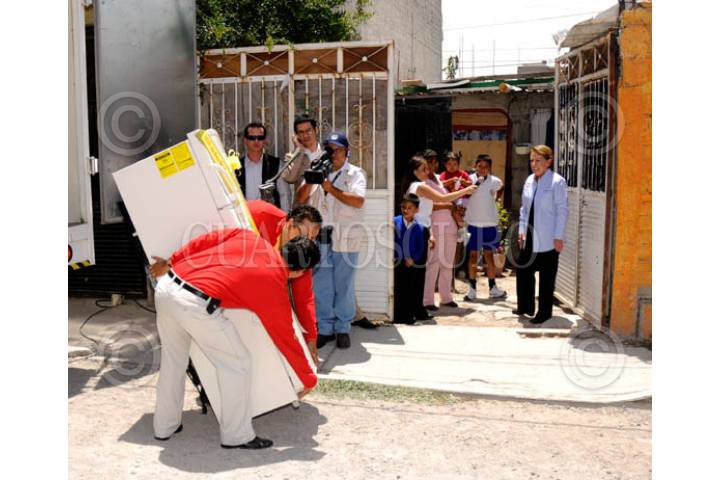 SANTIAGO DE QUERETARO, QUERETARO, 27AGOSTO2009.- Georgina Kessel en el evento 100 mil de acciones del programa de sustituciones de electrodomésticos 'Cambia tu viejo por uno nuevo' que se llevo acabo en la planta Mabe Astral. FOTO: FRANCISCO SANTOS/CUARTOSCURO.COM