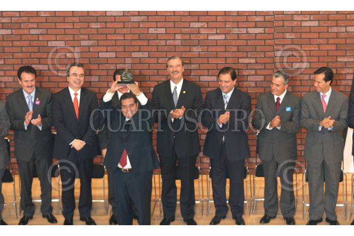 MÉXICO D.F. 04SEPTIEMBRE2006.- Alejandro Camcho Marquez recibio de manos del presidente, Vicente Fox, el Premio Nacional de Vivienda 2006, en la biblioteca Publica Central Vasconcelos. FOTO: GUILLERMO PEREA/CUARTOSCURO.COM
