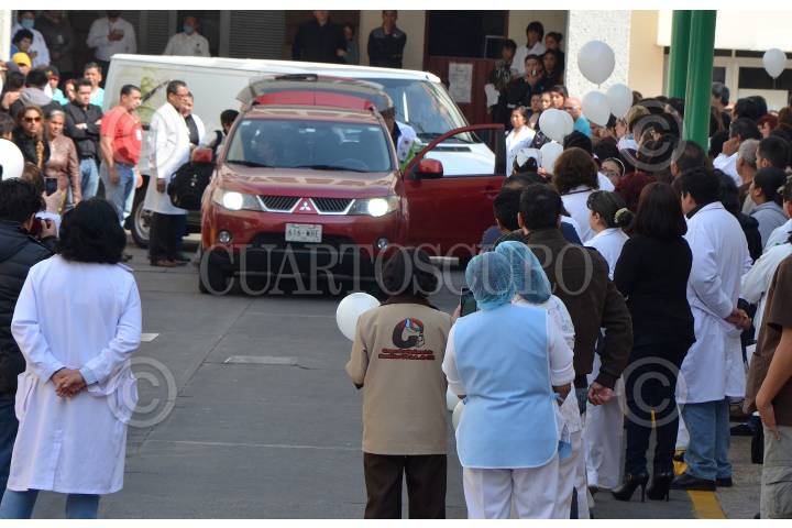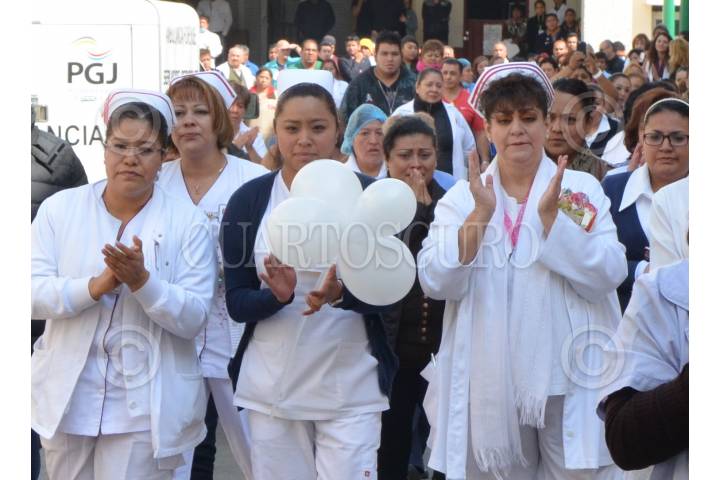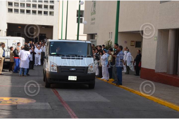 MÉXICO, D.F., 06FEBRERO2015.- Luego de luchar por su vida, el camillero del Hospital Materno Infantil, Jorge Luis Tinoco Muñoz, dejó de existir, sus compañeros entre ellos doctores, enfermeras, personal hospitalario y familiares despidieron el cuerpo de este héroe echando al aire globos de color blanco y aplaudiendo, en tanto las ambulancias encendieron las sirenas, pero a manera de despido gritaron: ¡viva el héroe que dio vida!. FOTO: ARMANDO MONROY /CUARTOSCURO.COM