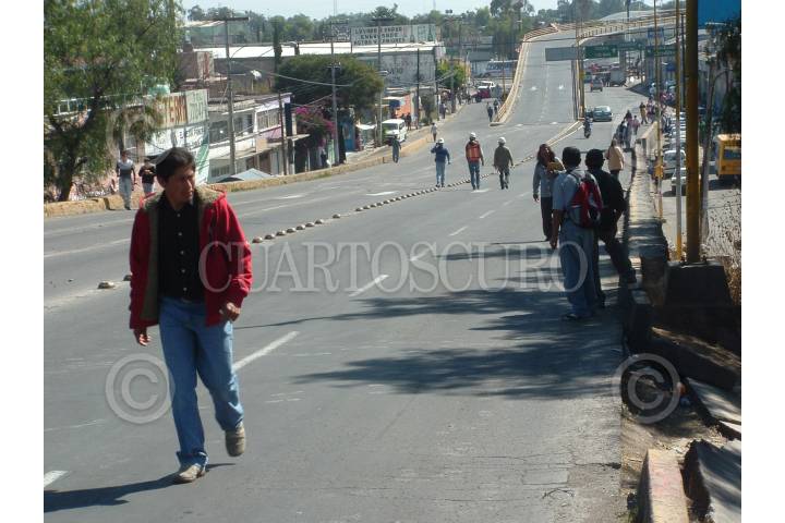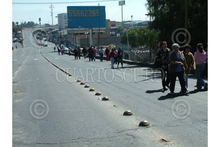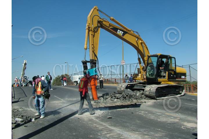ECATEPEC, ESTADO DE MÉXICO, 23ENERO2009.- Este viernes iniciaron los trabajos de demolición del puente vehicular de la avenida 30-30 o Revolución, que atraviesa la autopista México-Pachuca, como parte del Programa de Mejoramiento de Vialidades del Gobierno Municipal y la Secretaria de Comunicaciones y Transportes (SCT) federal. El bloqueo de esta arteria principal, provocó caos vial y que decenas de ciudadanos tuvieran que caminar varios metros para llegar a sus destinos o encontrar un medio de transporte. FOTO: MARIO NULO/CUARTOSCURO.COM