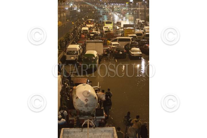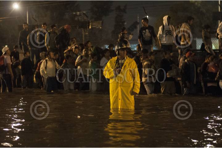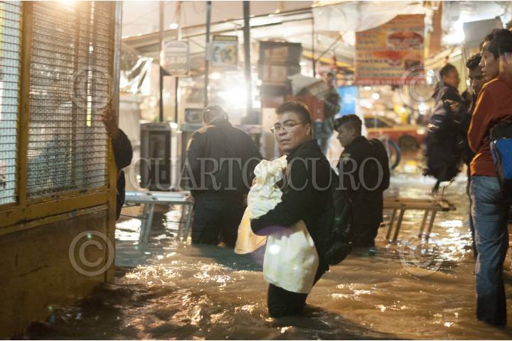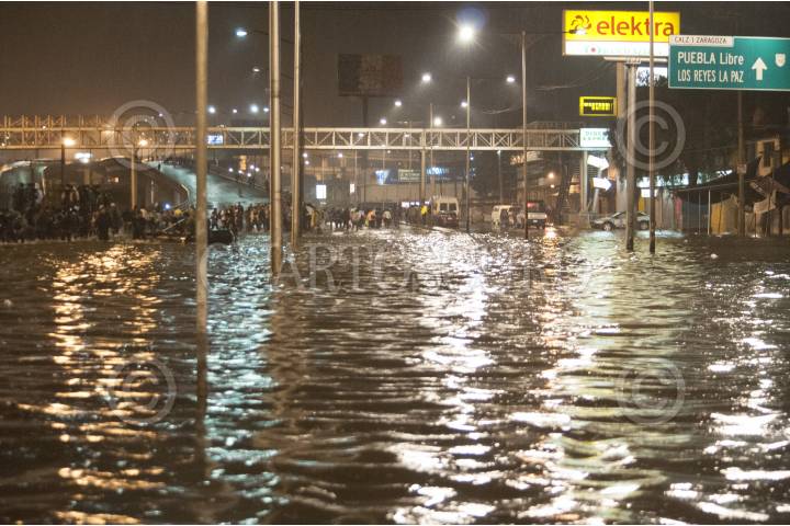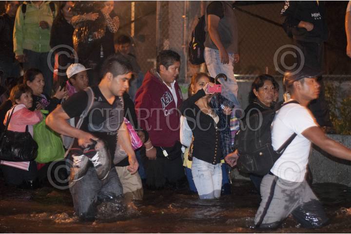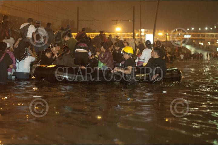 MÉXICO, D.F., 06SEPTIEMBRE2013.- Un gran tramo de la avenida Zaragoza quedó inundado por la intensa lluvia que azoto a toda la capital, varios decenas de autos quedaron varadas por la altura del agua, las afectaciones más severas se dieron a la altura del Puente de la Concordia, entre las estaciones del metro Acatitla y Santa Martha. Miles de personas caminaron la avenida Zaragoza desde el metro Aeropuerto a Acatitla al no haber transporte público. Brigadas de la secretaria de Desarrollo Social ayudaron a pasar a las personas con ayuda de lanchas inflables ya que el nivel de agua llegaba arriba de la cintura. FOTO: DIEGO SIMÓN SÁNCHEZ /CUARTOSCURO.COM