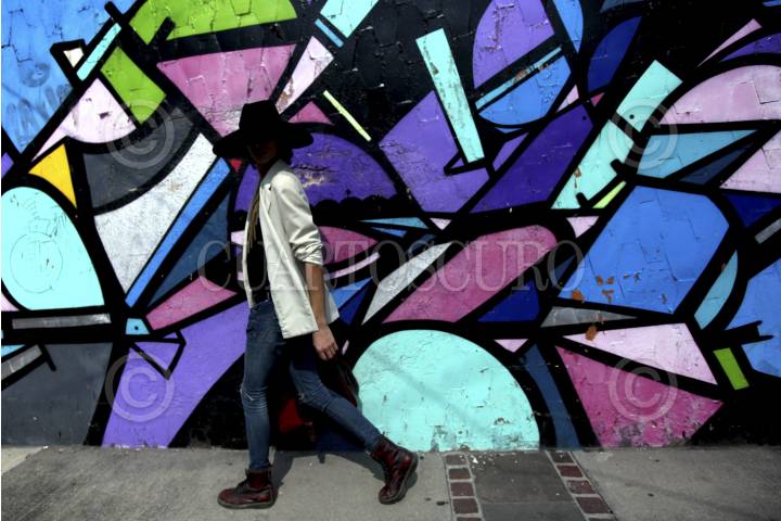 GUADALAJARA, JALISCO, 26NOVIEMBRE2013.- Un joven con un sombrero camina sobre calles de la capital tapatía camuflado entre el graffiti de la ciudad en una tarde soleada. FOTO: FÉLIX MÁRQUEZ / UARTOSCURO.COM
