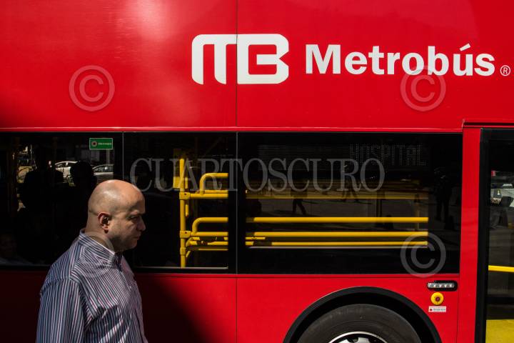 CIUDAD DE MÉXICO, 21NOVIEMBRE2018.- Una persona camina al momento de que en el fondo se proyecta un camión del metrobús sobre avenida Paseo de la Reforma. FOTO: MISAEL VALTIERRA /CUARTOSCURO.COM