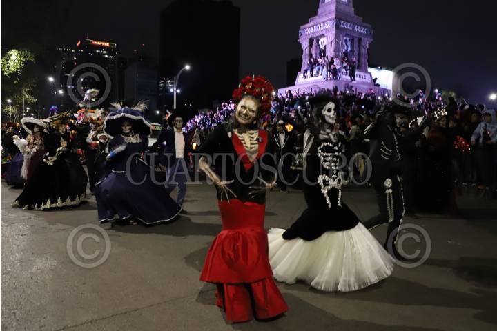CIUDAD DE MÉXICO, 27OCTUBRE2024.- Miles de personas participaron en la Procesión de Catrinas de este año, la cual partió del Ángel de la Independencia rumbo al Zócalo. FOTO: DANIEL AUGUSTO/ CUARTOSCURO.COM