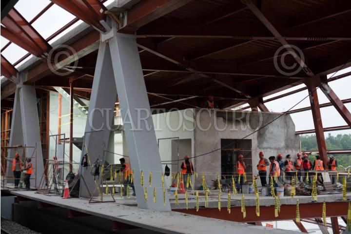PALENQUE, CHIAPAS, 12ABRIL2024.- Continúan los trabajos del megaproyecto del Tren Maya consolidado en el actual gobierno. Inaugurado por el presidente Andrés Manuel López Obrador el tramo Chetumal - Palenque, es visitado por decenas de turistas, curiosos o seguidores de la cuarta transformación, así nombrado este sexenio por el actual presidente, a pesar de que en las estaciones continúan los trabajos de construcción. Durante el recorrido de Palenque a Escárcega se observa la construcción de puentes vehiculares, pasos peatonales y talleres o espacios de trabajo para mantenimiento de los trenes. FOTO: ISABEL MATEOS /CUARTOSCURO.COM