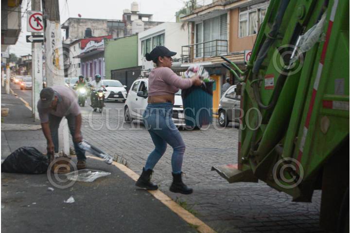 XALAPA, VERACRUZ, 08MARZO2024.- Lucero Hernández trabaja como recolectora de basura desde hace 9 años y sorprende a los vecinos cuando la ven arriba del camión, del que baja ágilmente para recoger las bolsas con un físico fuerte que se ha formado por su duro trabajo. Es madre soltera y dice estar orgullosa de la labor que hace, independientemente de tenerse que acostumbrar a los olores, afirma que disfruta de trabajar en ello. FOTO: YERANIA ROLÓN/CUARTOSCURO.COM