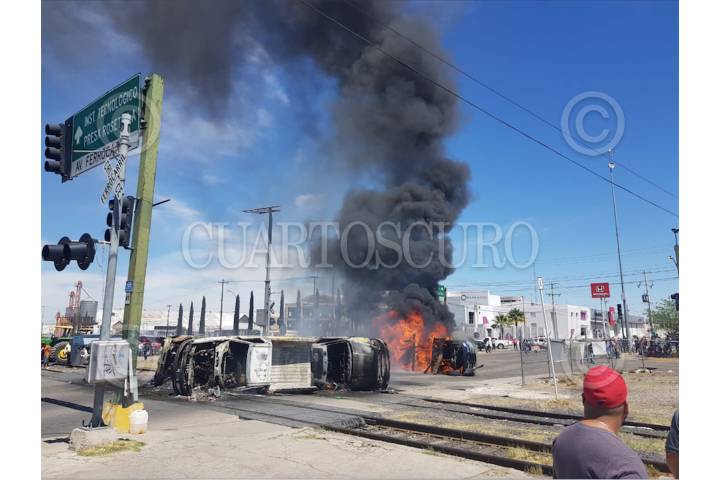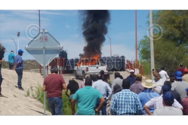 Varias camionetas de Conagua fueron incendias por pobladores que protestaron por el incremento de la extracción de agua de la presa La Boquilla
