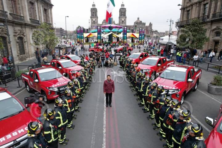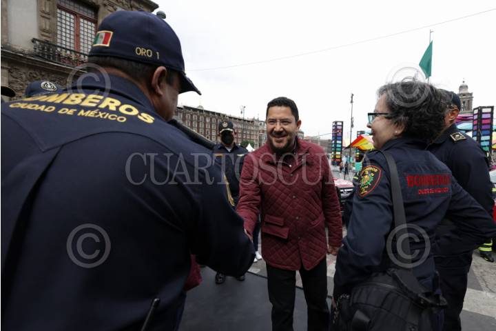 CIUDAD DE MÉXICO, 20ENERO2024.- Martí Batres, jefe de Gobierno, encabezó la entrega de doce nuevas unidades para el Heroico Cuerpo de Bomberos de la capital. FOTO: GOBIERNO DE LA CIUDAD DE MÉXICO/CUARTOSCURO.COM