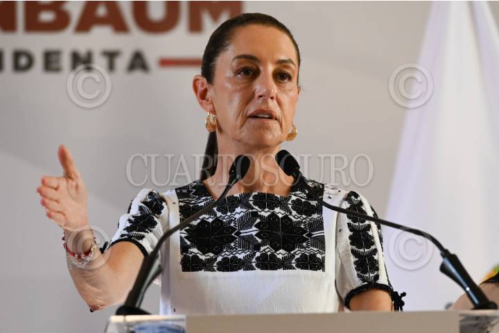 TEHUACÁN, PUEBLA, 10MARZO2024.- Claudia Sheinbaum, candidata presidencial de Morena, responde a los medios durante la conferencia de prensa. FOTO: DANIEL AUGUSTO/ CUARTOSCURO.COM