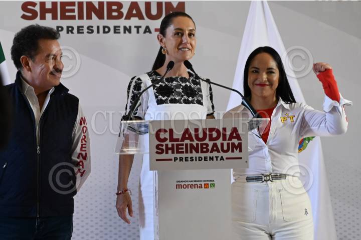 MORELIA, MICHOACÁN, 09MARZO2024.- Claudia Sheinbaum Pardo, candidata a la presidencia de la República por la coalición Morena-PT-PVEM, encabezó el mitin con simpatizantes de los partidos en la entidad. FOTO: ESPECIAL/CUARTOSCURO.COM