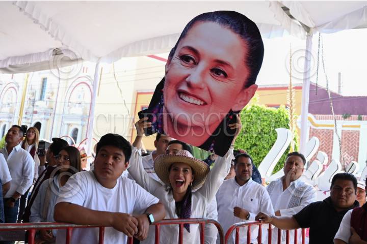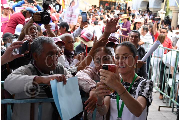 TEHUACÁN, PUEBLA, Claudia Sheinbaum, candidata presidencial de Morena,se toma fotografías con sus simpatizantes. FOTO: DANIEL AUGUSTO/ CUARTOSCURO.COM
