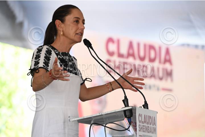 TEPEACA, PUEBLA, 10MARZO2024.- Claudia Sheinbaum, candidata presidencial de Morena,da un discurso durante su acto de campaña en Puebla. FOTO: DANIEL AUGUSTO/ CUARTOSCURO.COM