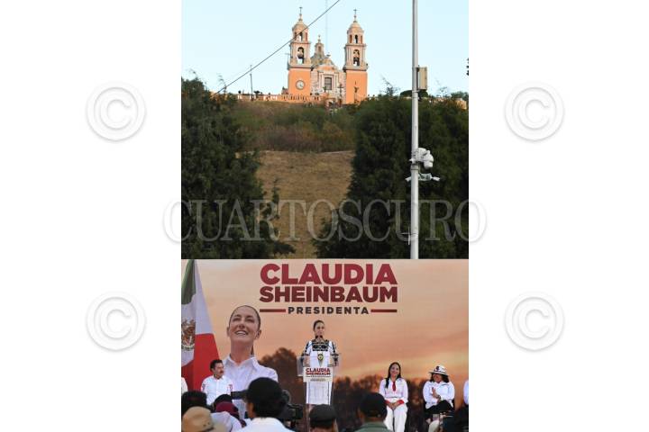 SAN PEDRO CHOLULA, PUEBLA, 10MARZO2024.- Claudia Sheinbaum, candidata presidencial de Morena, encabeza su acto de campaña en Puebla. FOTO: DANIEL AUGUSTO/ CUARTOSCURO.COM