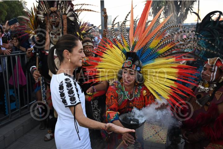 SAN PEDRO CHOLULA, PUEBLA, 10MARZO2024.- Claudia Sheinbaum, candidata presidencial de Morena, recibe una bendición por parte de habitantes del municipio. FOTO: DANIEL AUGUSTO/ CUARTOSCURO.COM