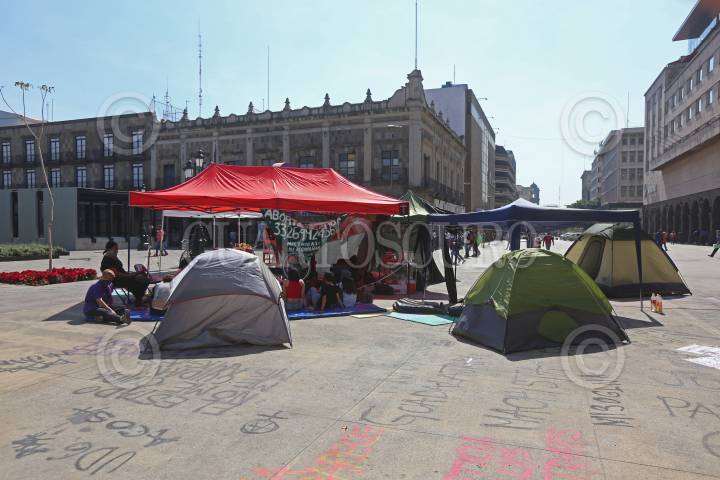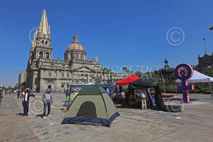 Feministas del colectivo 8 de marzo realizaron un campamento en el centro de la ciudad como parte de las actividades que se realizaron en el marco del Día Internacional de la Eliminación de la Violencia contra la Mujer.