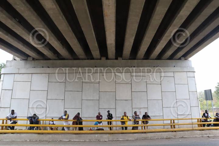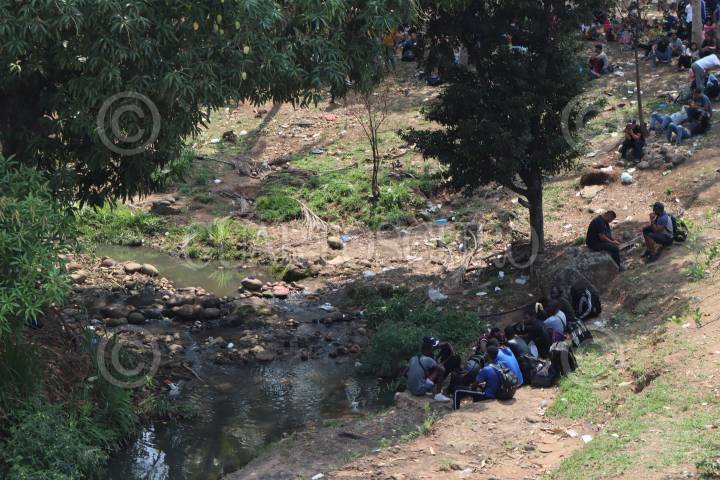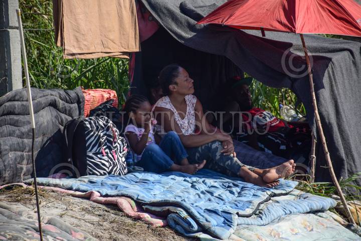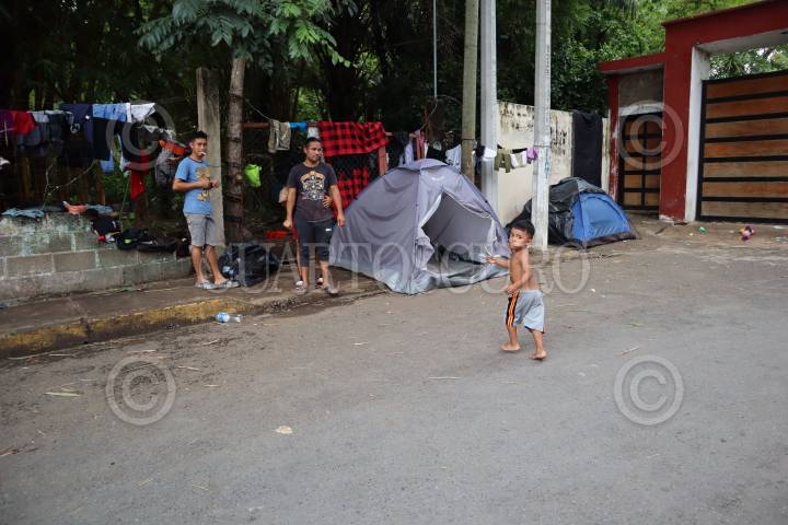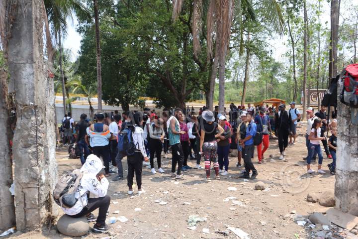 Migrantes de las distintas nacionalidades, en su mayoría haitianos, se establecieron en un pequeño campamento, ubicado en el Ejido Viva México, esto a pesar de que a unos metros hay a un reten del Instituto Nacional de Migración y Guardia Nacional.