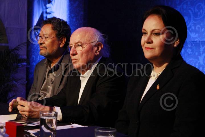 Federico Campbell, Enrique Semo, Evodio Escalante, al termino de la mesa titulada "ciudad al debate¨ que se realizo en el centro cultural Sn Angel, análisis que no fue analizado como el público esperaba FOTO Susana Navarrete/CUARTOSCURO.COM