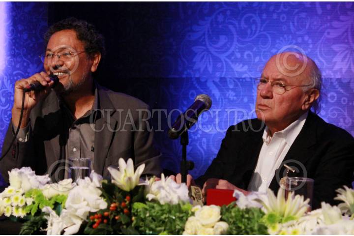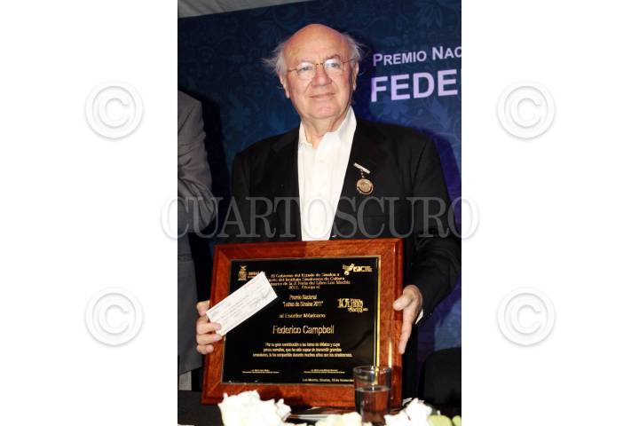 MOCHIS, SINALOA, 21NOVIEMBRE2011.- El escritor Mexicano, Federico Campbell, originario de Tijuana, Baja California, recibió el Premio Nacional de Literatura ¨Letras de Sinaloa¨ el cual consta de una medalla de oro grabada con el emblema de este galardón, y une reconocimiento en el marco de la décima feria del libro en la ciudad. FOTO: CORTESÍA INSTITUTO SINALOENSE DE CUALTURA/CUARTOSCURO.COM