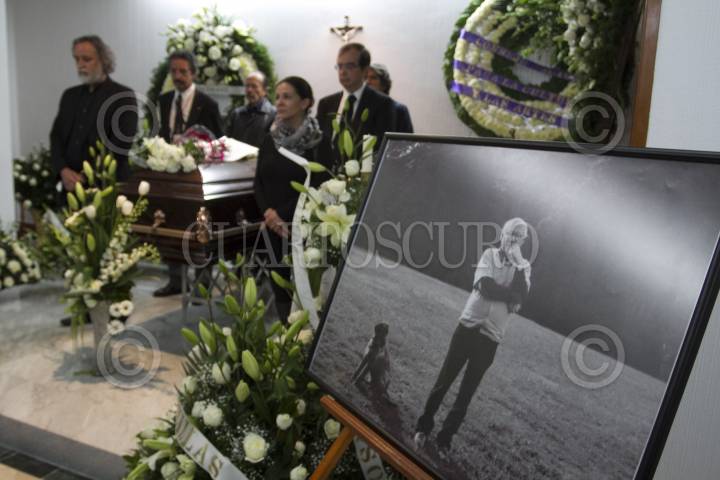 MÉXICO, D.F., 16FEBRERO2013.- Carmen Gaytan (viuda), Federico Campbell Peña (hijo), así como familiares y amigos, montaron una guardia de honor durante el funeral del escritor y periodista Federico Campbell, quien falleció en la Ciudad de México, por un derrame cerebral a consecuencia de complicaciones (de la influenza) AH1N1. FOTO: GUILLERMO PEREA /CUARTOSCURO.COM