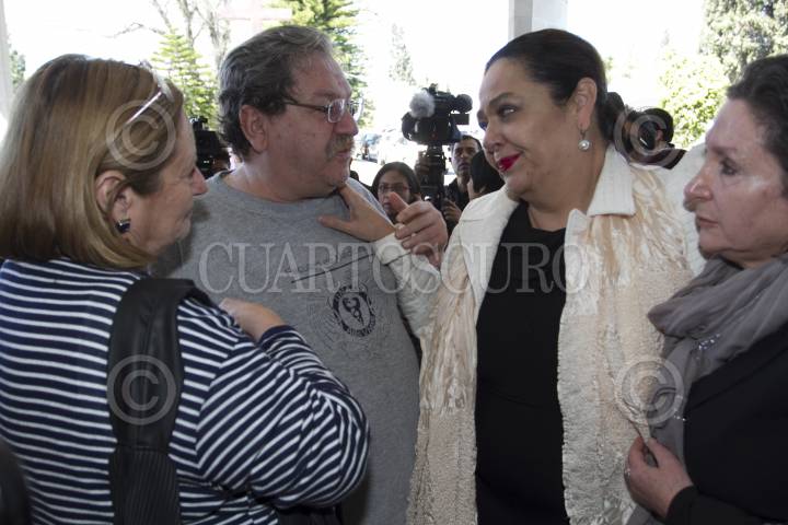 MÉXICO, D.F., 16FEBRERO2013.- Carmen Gaytan, y Siria Campbell, hermana de Federico Campbell, durante el funeral del escritor y periodista Federico Campbell, quien falleció este en la Ciudad de México, por un derrame cerebral a consecuencia de complicaciones (de la influenza) AH1N1. FOTO: GUILLERMO PEREA /CUARTOSCURO.COM