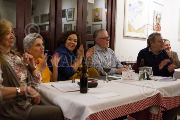 MEXICO, D.F., 26FEBRERO2015.- Blanch Petrich, preriodista; Carmen Gaitán Rojo, viuda de Federico Campbell; David Huerta, poeta; y Eduardo Clavé Almeida, estuvieron en la charla que dieron amigos y familiares de Federico Campbell con motivo de su fallecimiento. FOTO: IVÁN STEPHENS /CUARTOSCURO.COM