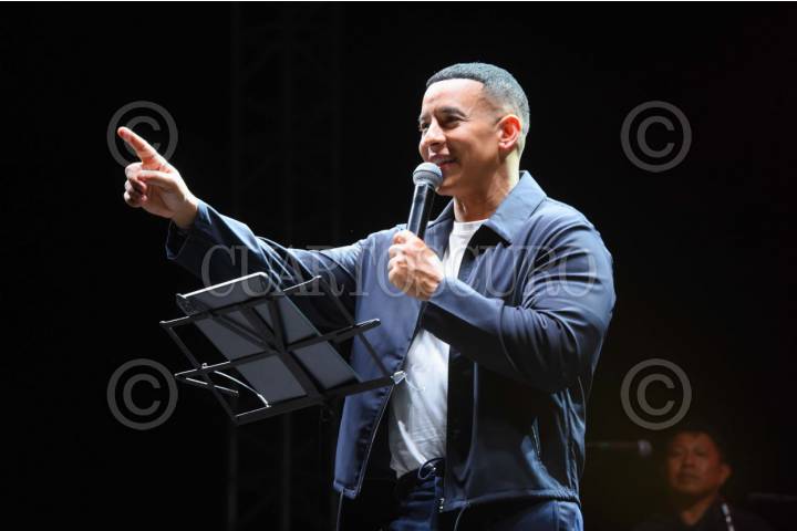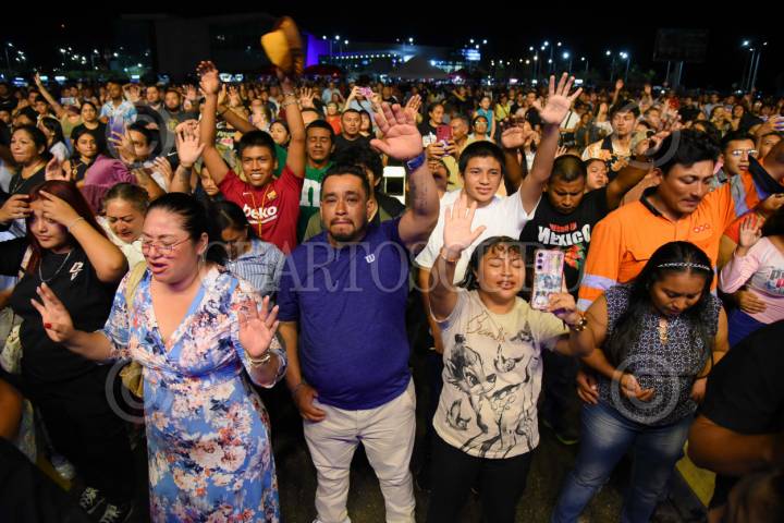 CAMPECHE,CAMPECHE, 11JULIO2025.- Cientos de asistentes presenciaron el mensaje de fe " La espera que desespera" por parte del puertoriqueño Raymond Ayala, mejor conocido como Daddy Yankee, quien regresó a Campeche en su nueva faceta convertido en cristiano. En el evento Dunamis que se llevo a cabo en el Foro Ah Kim Pech, el puertoriqueño afirmó que "Jesús nunca llega tarde. Todos podemos cambiar en la vida y ser un ejemplo. Dios siempre nos tiene preparados para una obra". FOTO: MICHAEL BALAM/CUARTOSCURO.COM