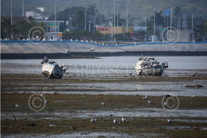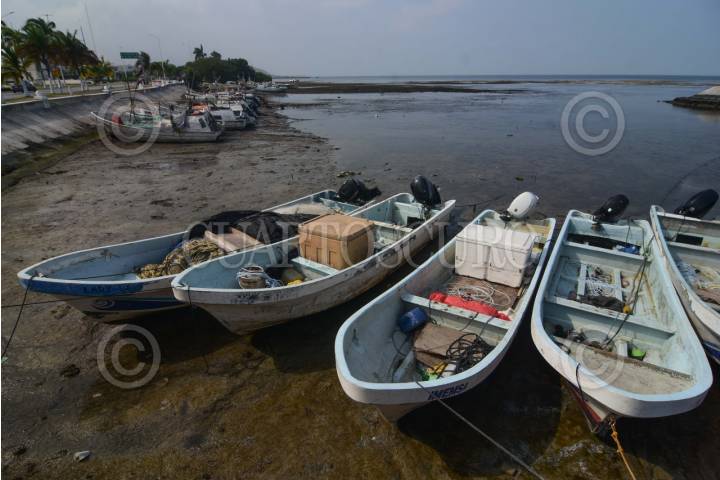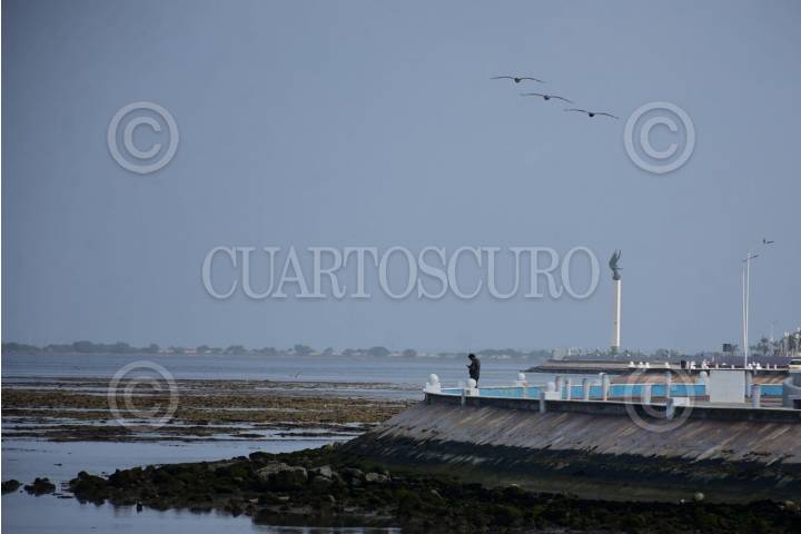 CAMPECHE, CAMPECHE 13 DE ENERO 2024.- Gran parte del malecón de Campeche se pudo observar una vaciante, mejor conocido como bajamar un fenómeno natural que se da por los cambios periódicos del nivel del mar que se producen por las fuerzas gravitacionales del sol y la luna. FOTO: MICHAEL BALAM/CUARTOSCURO.COM