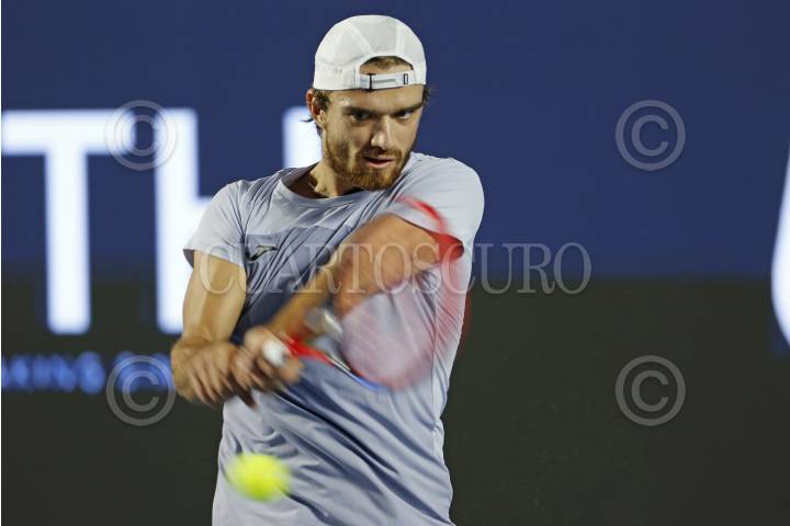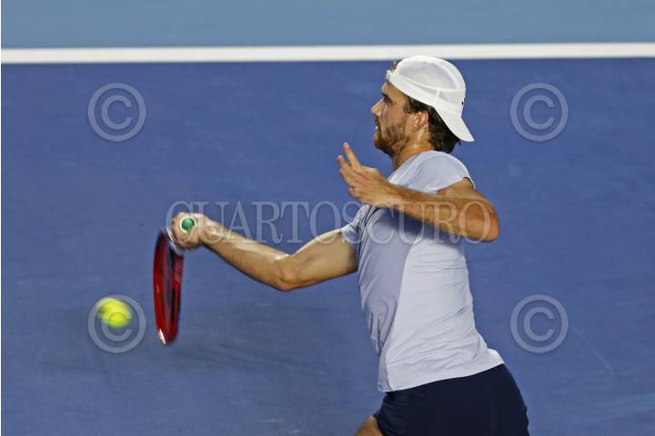 ZAPOPAN, JALISCO. 16FEBRERO2025.- Tomas Machac de Republica Checa y David Goffin de Bélgica durante el juego de la final del torneo internacional de Tenis UTS, que se llevo a cabo en el Estadio Panamericano de Tenis y en donde Tomas Machac se corono campeón de la justa deportiva. FOTO : FERNANDO CARRANZA GARCIA / CUARTOSCURO.COM