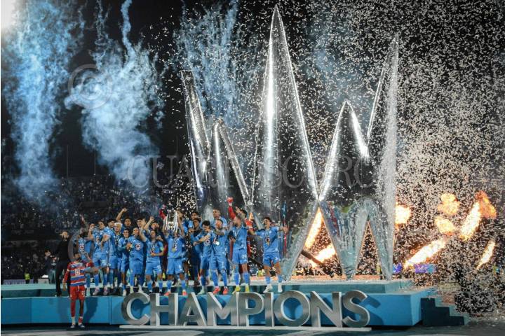 CIUDAD DE MÉXICO, 01JUNIO2025.- El Club Cruz Azul se coronó en la Final de la Copa de Campeones de la Concacaf 2025 al vencer cinco goles a cero a los Whitecaps, partido llevado a cabo en el Estadio Olímpico Universitario. FOTO: MARIO JASSO/CUARTOSCURO.COM